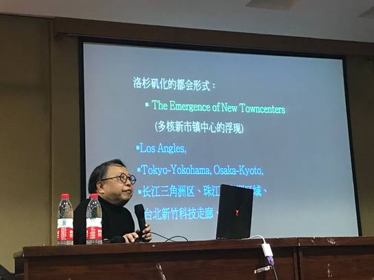 本网讯(通讯员 徐伟 杨永丰)11月14日晚7:00,应bv伟德国际1946邀请,美国加州大学洛杉矶分校 (UCLA) 艺术及建筑学院博士、联合国教科文组织国际艺评人协会副主席(Vice-president, AICA, UNESCO, UN)陈朝兴教授,做客bv伟德国际1946,于武昌校区三教六楼多功能厅举办了主题为“后现代都会及其城市设计”的专业学术讲座活动。讲座由bv伟德国际1946建筑与城乡规划系系主任徐伟主持。