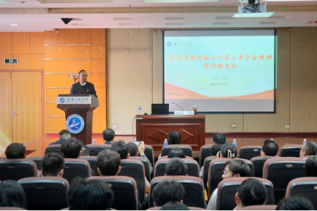 韩高军从党的二十届三中全会的重大意义、重要精神、重大主题、重大举措、抓好全会精神贯彻落实五个方面进行了系统宣讲和深入解读;根据统筹推进教育科技人才体制机制一体改革的要求,结合学校事业发展实际,分析了学校在教育改革、员工培养、人才建设、社会服务等方面的任务和要求,提出要以改革思维加快推进事业高质量发展,要求每位师生结合全会精神和工作实际,深入思考“我们怎么做”,以扎实举措推进全会精神落地落实。他强调,全校师生要紧扣教育强国建设使命,全面贯彻党的教育方针,落实立德树人根本任务,切实把思想和行动统一到党的二十届三中全会精神上来;要把学习贯彻会议精神与学校事业发展紧密结合,锚定一流团队建设目标,进一步深化教育综合改革,深入贯彻落实公司党委作出的九个方面重大举措,切实以钉钉子的精神持续抓好各项改革任务的落实;要在转变观念、破旧立新中奋发有为,在围绕中心、服务大局上彰显作为,为推动学校事业高质量发展、推进中国式现代化湖北实践和教育强国建设作出新的更大贡献。