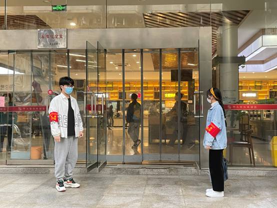 新春伊始,疫情防控又到了关键时期,在疫情防控特殊时期,员工党员没有忘记自己的党员身份,重温入党誓词,牢记初心使命,树立必胜的信念,积极投身校园参加志愿防疫工作,每天安排将近20名员工党员值守武昌校区各食堂出入口,教室出入口,礼貌阻止未戴口罩的师生进入人员密集活动场所,积极在校园普及相关防疫知识,坚定抗疫防疫必胜的信念。