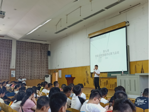 郭飞副书记着重强调了学校和学院员工日常管理工作,要求新生积极塑造优良学风,主动参加学院活动,同时对即将到来的军训活动严纪律,提要求,勉励新生刻苦学习,认真对待老员工活,立志成才。
