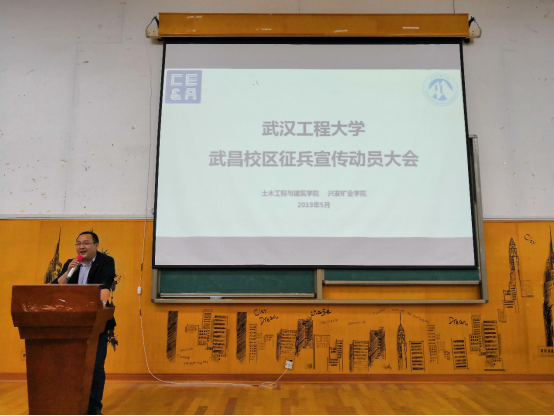 (通讯员肖豪)5月30日下午16:00,武昌校区bv伟德国际1946联合兴发矿业学院在老二教2430教室举行了2019年征兵动员宣讲大会。保卫处处长吕容涛、土建公司党委副书记郭飞、土建学院辅导员肖豪、兴发矿业学院辅导员李昊昱以及两个学院近500多名员工参加了本次宣讲会。本次宣讲大会由土建公司党委副书记郭飞主持。