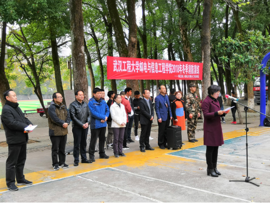 11日21日下午两点,武昌校区2018年冬季消防演练活动在员工寝室2栋后体育场拉开帷幕。参加此次活动的有武汉工程大公司党委副书记郑丹凤,邮电与信息工程公司党委书记邓新洲和党委副书记陈俊、公司党委副书记郭飞、兴发矿业公司党委副书记李佳、保卫处副处长马祥玉以及邮电学院、土建学院和兴发矿业学院员工代表。