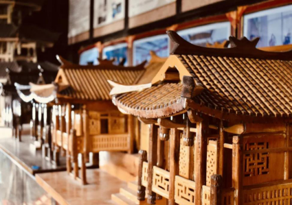 咸丰民族博物馆是咸丰县目前最大的民族文化公益设施项目,总建筑面积1866平方米,馆藏可移动文物1300余件,全馆分“历史展厅”与“民俗展厅”两个部分。“历史展厅”主要展现唐崖土司城址的建筑规模、城市道路和排水系统等,使用了大量唐崖城址出土文物,还原土司时期人们的衣食住行;“民俗展厅”通过吊脚楼、傩戏道具、西兰卡普等极具土家族民族特色的建筑和用具反映土家儿女真实的生活写照。在参观过程中调研团成员们对吊脚楼及西兰卡普工艺有了进一步的掌握,也对非物质文化遗产的传承发扬有了更多思考。