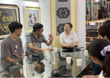 7月14日抵达恩施后,调研团首先前往西兰卡普创意基地“布衣织绣”工厂进行参观学习。西兰卡普工艺传承人田若兰女士引领大家参观工厂并为大家热情讲解了西兰卡普的历史由来及发展现状。“西兰卡普”是一句土家语,意为土家织锦,是一种极其古老的民间工艺,其被评为“中国三大名锦”之一。在对田若兰女士的采访中,她指出现今工艺品设计仍旧困难重重,在保留传统特色的同时将其影响面进一步扩大是目前最大的问题。就此问题,徐老师和田女士讨论了西兰卡普的元素的利用,以传统元素在现代建筑上的运用为例,探讨了二者结合的方式办法。如建设西兰卡普村,打造土家文化基地,让品牌年轻化、大众化。