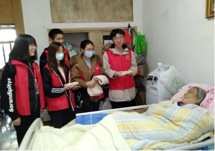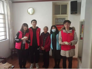 最后,志愿者们带着分装打包好的饺子,去探望了社区的老人们,并送上自己亲手包的饺子。86岁的陈志钰老人见到青年志愿者们非常高兴,一直念叨:已经是第三年吃到冬至的饺子了。同学们祝福老人健康平安,并表示明年冬至还给老人送饺子。