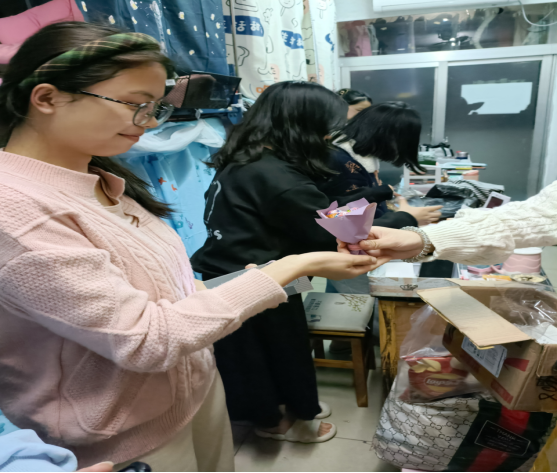 (通讯员:张中强)3月7日,由学院员工会组织策划的“青春心向党,巾帼绽芳华”女生节特别活动圆满结束,本次活动旨在展现女老员工自立自强的精神面貌,丰富校园文化生活。为积极配合校园疫情防控要求,大家选择了送礼物上门的方式来庆祝今年的女生节。志愿者为女同学们准备了棒棒糖花束,发卡发箍,手写明信片等精美小礼品,在这个特殊的日子里给女同学带来了珍贵的欢乐与惊喜。