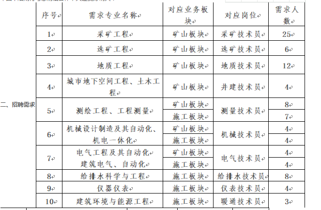 新员工纳入公司培养体系,签订师带徒协议,提供职称评审及职业晋升双通道;按岗定薪,工作即缴纳五险一金,统一安排食宿,转正后享受带薪年休假、探亲假、执业资格证书奖励、绩效奖、项目兑现奖、防暑降温费、通讯补贴、交通补贴、采暖补助、年度体检等福利政策;进入矿山板块工作的员工同时还可享受矿山津贴、下井津贴以及年功奖励。