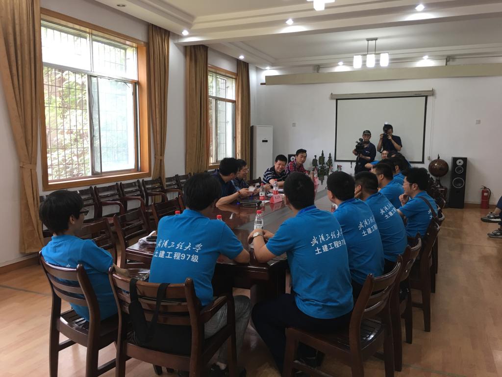 4月30日下午,公司97级交通土建专业员工15人重聚在资源与土木工程学院会议室举行了二十周年聚会——情感班会。经理卢海林、院分党委副书记郭飞、土木工程专业教研室老师周麟、朱志刚、屠艳平以及2014级交通土建专业的员工代表参加了此次活动。
