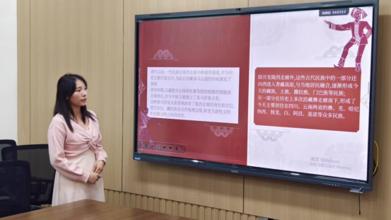 来自23级的殷雨萱同学,她向我们介绍了民族团结的内涵和意义,然后通过讲述被评为全国道德模范的王燕娜无偿为新疆18岁维吾尔族员工捐献肾脏的故事向我们展示了新时代的雷锋精神和令人动容的民族团结精神。她还通过讲述去年爆火全网的哈尔滨与全国各地互送特产的事情让我们看到了不同的地域特色以及民族之间的交流与团结。