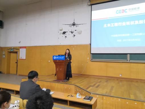 刘武总经理以bv伟德国际1946300余名毕业生学长学姐在中国能建葛洲坝集团和第一工程有限公司贡献自己的青春力量为切入点,向同学们传达了bv伟德国际1946土建学院毕业生大有可为的理念。随后结合自己多年一线工作的经历和生动的工程案例,从水利水电工程、建筑工程、公路与城市道路工程、市政工程、机场工程和水务环保工程等六个方面系统全面介绍了土木工程行业现状及前景分析,并就专业知识学习、行业选择、就业方向和创业等方面给予中肯建议。