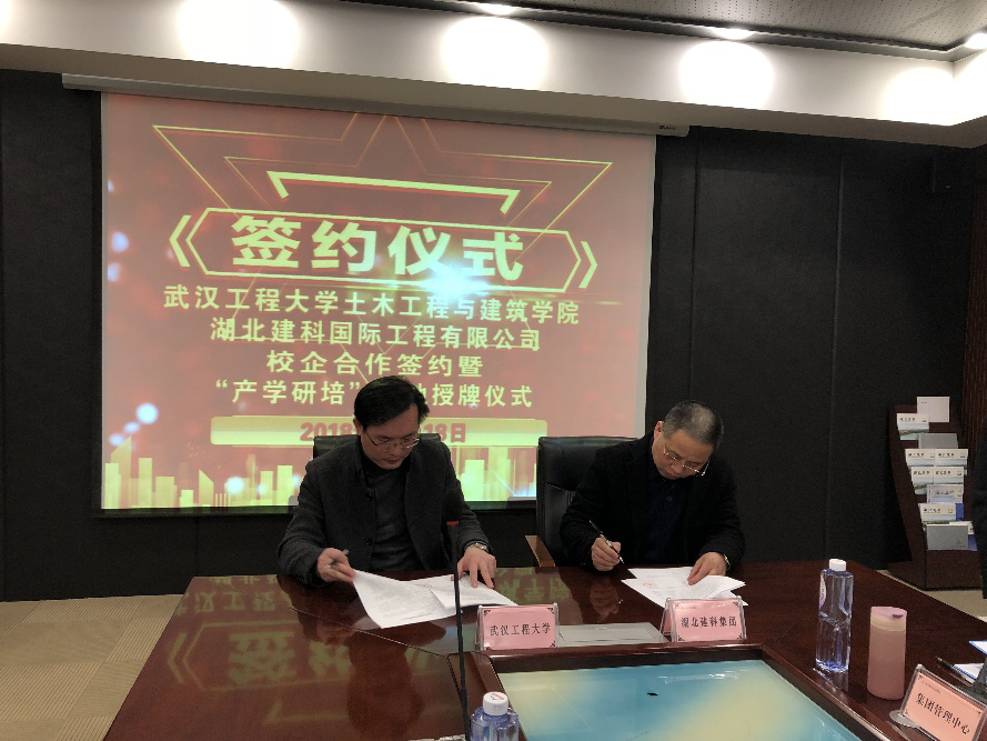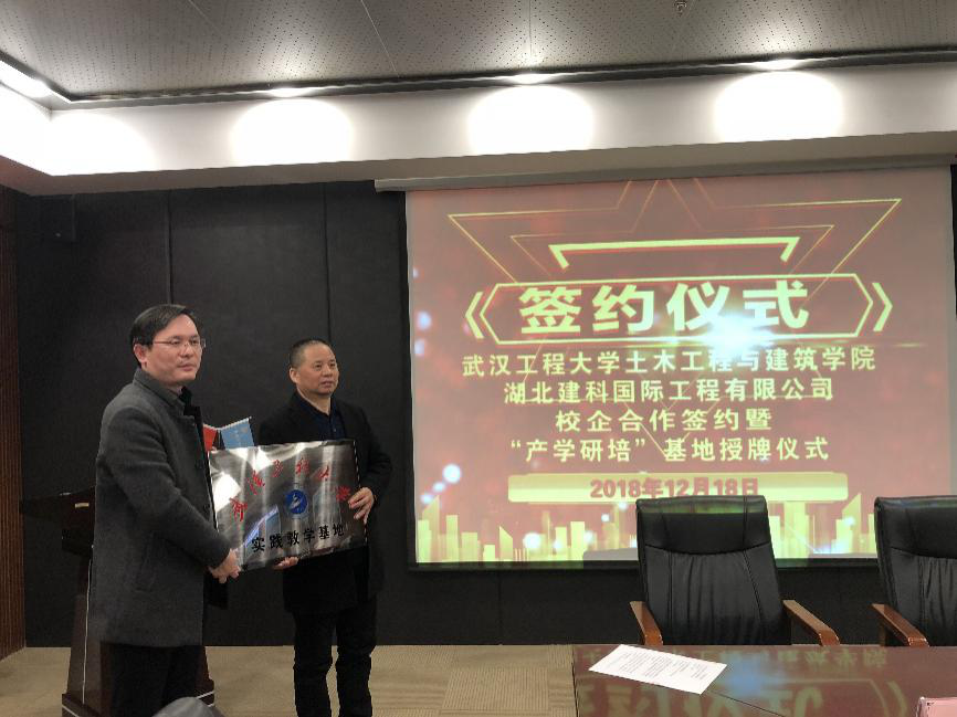 会谈期间,公司与湖北建科国际工程有限公司共同签署了院企合作协议,并举行了“产学研陪”实习基地授牌仪式。