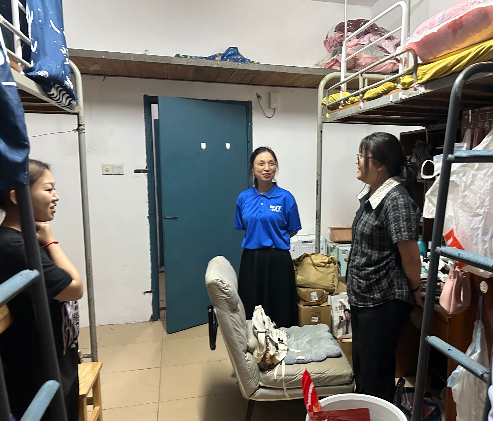 走访过程中,学院领导逐间宿舍询问新生需求,从生活细节到学习规划,从饮食偏好到兴趣爱好,以“拉家常”的方式与新生互动,现场笑声不断。在了解到部分新生因离家较远存在适应困难时,公司党委书记陆新鼓励道:“大学是全新的起点,学院就是你们的家,遇到困难随时找老师,希望大家要珍惜大学时光和同窗情谊。”