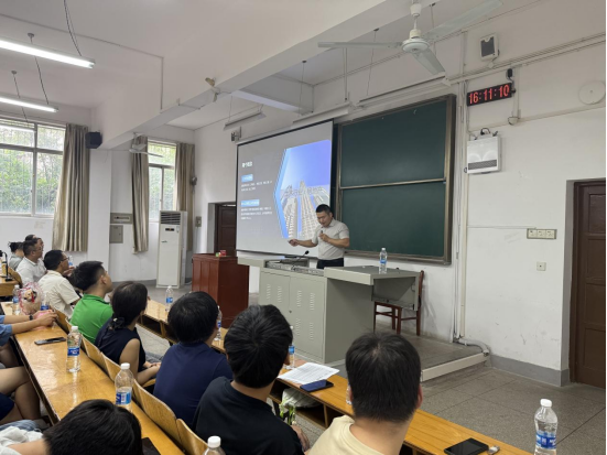武汉城市发展集团碧水投资运营有限公司智慧水务团队负责人曹若曦以“南湖流域智慧管控平台”“巡司河二期项目”为例,展示了信息化技术在水务环保中的实际应用。他指出,当代土木工程已不再是传统意义上的“搬砖”,而是与人工智能、遥感技术、数字孪生等前沿科技紧密结合的新兴领域,鼓励同学们不仅要学好专业基础,更要主动学习编程、数据分析、三维可视化等数字技能,成为“既懂工程,又懂技术”的复合型人才。