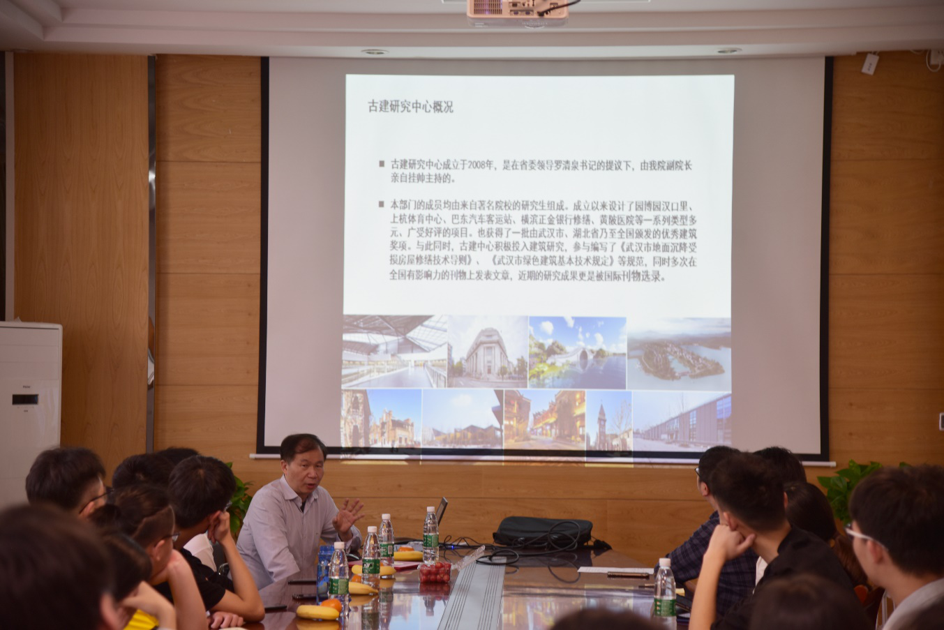 随后,在介绍了中信团队完成的项目,诸如:湖北省图书馆、武汉市民之家、光谷国际网球场、辛亥革命博物馆、南宁东火车站和神农架机场航站楼等渐渐将话题引入历史建筑的保护和空间再造中来。在简单介绍了一下他们成立的古建研究中心的概况后,提出了两个设计要点: