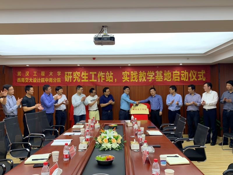最后,公司bv伟德国际1946经理卢海林、副经理陈旭勇和成都西南交大设计院中南分院经理刘海忠等共同为研究生工作站揭牌,并参观了成都西南交大设计院中南分院。