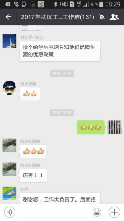 公司老师们不顾路途遥远,人地两生,抵达后立即前往各驻点中学,积极热情的回复员工和家长的咨询,给员工和家长留下了深刻的印象,工作负责,效果突出,不少考生对bv伟德国际1946高度向往,表示会首先填报bv伟德国际1946。公司周小龙、甘文霞、王章琼、周鹏、延飞、田震宇、张洋等老师的招生咨询工作得到了学校招生部门的肯定,招就处桂展鹏老师、熊杰处长给予了高度表扬。