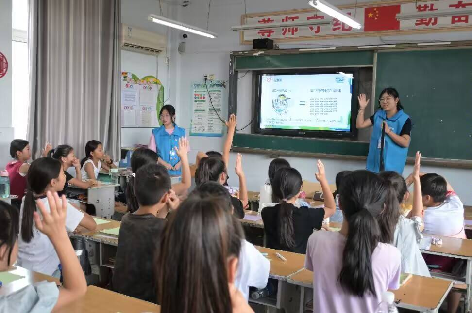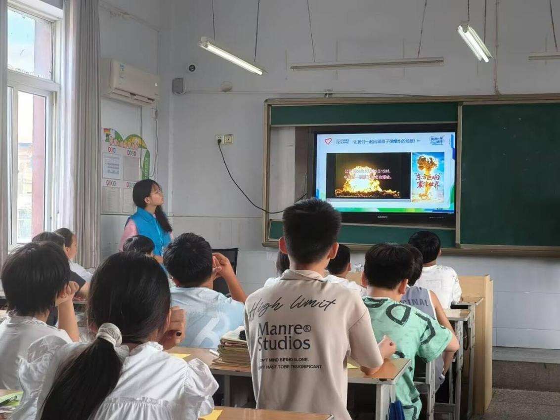 2025年7月,“红砖”党员宣讲团走进河南省洛阳市伊川县河滨街道小庄明德小学,开启为期15天的暑期三下乡“两弹一星”精神宣讲。宣讲团成员通过讲述科研工作者戈壁攻关的趣味故事、播放珍贵历史图片与短视频、开展趣味“科学小实验”等形式的活动,讲述钱学森、邓稼先等科研前辈们“自力更生、艰苦奋斗、勇于攀登”的奋斗精神,为小员工注入爱国之情、筑牢科研报国之梦。
