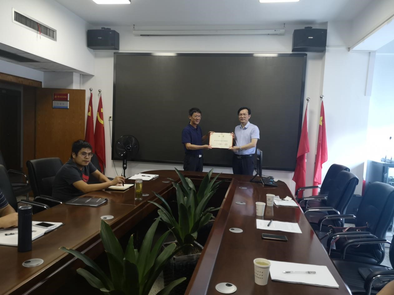 首先陈旭勇副经理向智能公司总经理刘松教授级高级工程师发放湖北产业教授证书。