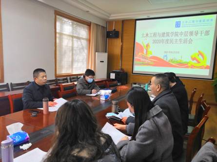 本网讯(通讯员 项勤)根据学校关于开好2020年度中层党员领导干部民主生活会统一部署安排,1月13日下午,土建学院在213会议室召开中层领导干部民主生活会。纪委书记徐慢参加会议并作点评讲话,学校纪委副书记任兵到会指导。会议由学院分党委书记刘炳春主持,学院副经理(主持工作)陈旭勇,学院分党委副书记成轶,副经理刘章军、吴巧云参加了会议,工会主席张哨军、组织员袁安会和党务干事列席会议。