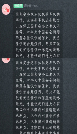 坚持总体国家安全观是习近平新时代中国特色社会主义思想的重要内容,也是新时代坚持和发展中国特色社会主义的基本方略之一。在全球抗击疫情的特殊时期,学习国家安全法意义重大,公司上下高度重视,公司党委、团委根据中央和省委部署,结合学校及学院实际,制定了周密的活动方案。一方面通过微信公众号、网站、音频宣传标语等生动活泼的宣传方式,广泛宣传《国家安全法》《反恐怖主义法》《反间谍法》等法律知识,切实提高国家安全知识的知晓率和普及率;另一方面通过网络知识竞赛等形式调动全院研究生参与的积极性,加大宣传的力度和范围,让全院研究生深切感知国家安全和个人安全密切相关,明确维护国家安全的责任和义务,将总体国家安全观内化于心、外化于行。