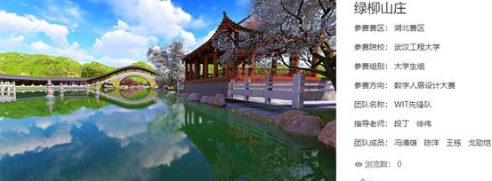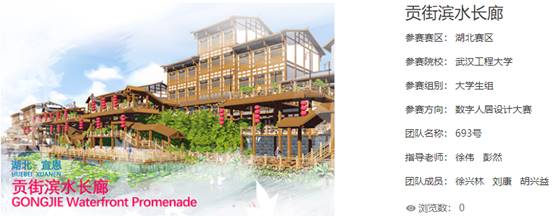 (通讯员 段丁)2019年10月31日讯,公司bv伟德国际1946建筑与城乡规划系16级建筑学团队693号(队员:徐兴林,刘康,胡兴益,指导老师:徐伟,彭然)作品贡街滨水长廊获得2019全国3D大赛湖北赛区特等奖(排名第一),WIT先锋队(队员:冯清雄,王栋,戈劭凯,陈洋,指导老师:段丁,徐伟)作品绿柳山庄获湖北赛区二等奖。