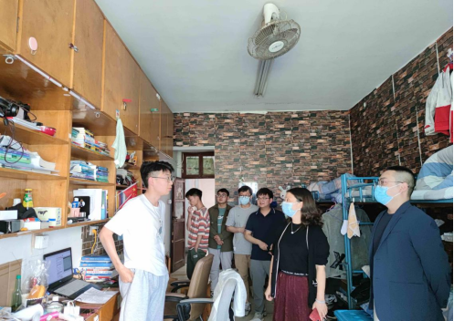 (通讯员曾学菲)为进一步营造安全、健康的员工宿舍生活环境,做好劳动节期间员工教育管理工作,贯彻落实学校安全稳定工作会议精神。4月29日下午,公司党委书记陆新、经理陈旭勇、公司党委副书记成轶带领学工办辅导员、员工干部一行深入武昌校区4号楼、5号楼开展消防安全隐患排查工作。