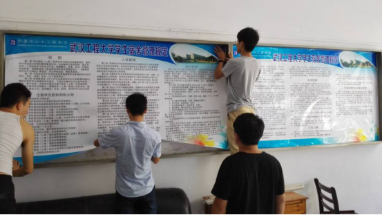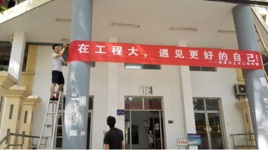 为保证资土学院回归武昌校区办学后第一次迎新工作的顺利进行,资土学院院领导和老师们提前安排部署迎新工作。公司党委副书记郭飞带领全体学工办老师、志愿者和员工干部清扫整理员工宿舍,更新资土学院所有的指示牌和宣传栏,悬挂迎新标语,打造特色寝室文化,宣扬资土精神,努力营造老校区良好的校园氛围。