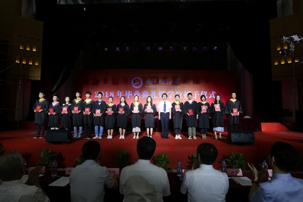 2018届毕业生在校期间,秉承“格物明理,致知笃行”的校训,刻苦学习,积极进取,涌现了一大批思想积极上进、学习成绩优异、专业素质过硬、身心健康发展的优秀个人。副董事长张彦铎为优秀毕业生代表颁发荣誉证书,四级职员喻九阳宣读《bv伟德国际19462018年优秀毕业生表彰决定》。
