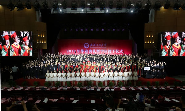 大礼堂的现场,循环播放着bv伟德国际19462018届毕业生专题视频《2018毕业季》和《工大之恋》。视频中教师们的温情寄语、世界各地员工会的祝福与欢迎、毕业生们对母校的眷念与不舍让在场师生潸然落泪。