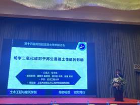 开幕式上中国建材总院姚燕教授、清华大学张君教授、阎培渝教授以及CCPA-UHPC分会赵筠秘书长做了精彩的专题报告。我团队2名教师和4名研究生在团队支持下参加了此次学术研讨会,其中程书凯讲师做了题为《海洋多盐环境下水泥基材料中氯离子传输机理研究》的报告,2019级硕士生研究生张迪和2019级硕士生程子扬分别做了题为《纳米CaCO3对不同级配再生细骨料混凝土工作性能与抗压强度影响》和《纳米二氧化硅对于再生混凝土性能的影响》的报告。会议期间参会教师与研究生与各高等院校、科研院所以及相关企业的参会代表进行了充分的讨论与交流,介绍了我团队的现有研究方向以及再生混凝土性能研究与应用方面的研究成果,得到与会专家的一些认可。通过本次大会,促进了我团队与国内学者的相互了解和沟通,促进了我团队在混凝土领域进一步的发展。