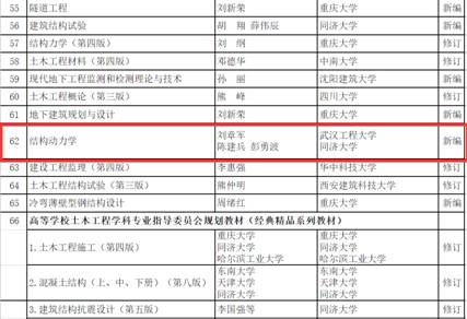 (通讯员 周小龙)近日,住房和城乡建设部公布了“十四五”规划教材立项建设名单,由公司bv伟德国际1946刘章军教授和同济大学陈建兵、彭勇波教授主编的《结构动力学》研究生教材在全国高等教育、高等职业教育和中等职业教育的住房和城乡建设领域512项学科专业规划教材中脱颖而出,入选高等教育类教材立项建设名单。