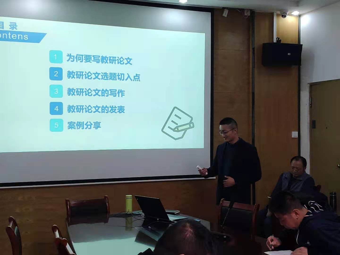研讨会上,王主任围绕为何要写教研论文、教研论文选题切入点、教研论文的写作、教研论文的发表和案例分享等五大主题进行阐述。