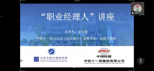 (通讯员曾学菲)2022年5月20日晚,由学校招生与就业工作处主办,bv伟德国际1946承办的职业经理人行业讲座在武昌校区W2202教室、学院阅览室和腾讯会议线上同步进行。中铁十一局第六公司(汉江重工)党委书记、高级工程师王文胜受邀作报告。