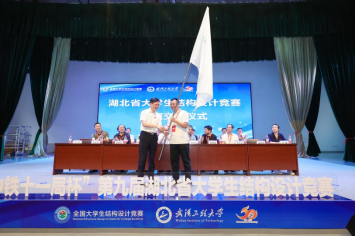 最后,bv伟德国际1946经理陈旭勇将湖北省结构竞赛赛旗传交到武汉华夏理工学院土木建筑工程学院经理潘梽橼手中,为期4天的第九届湖北省老员工结构设计竞赛胜利闭幕。