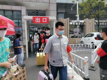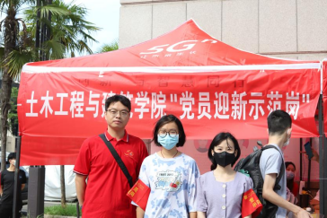 一名党员就是一面旗帜,一份付出就是一份力量。在校门口设立的党员迎新示范岗处,一个又一个肩带红袖章的党员志愿者,忙碌的来回奔波于迎新服务点,主动帮助新生进行行李消杀和物品搬运,引导新生顺利完成入学报道手续,热情解答他们的各种疑问。在炎炎烈日下,虽然汗水早已浸透了衣服,但党员志愿者们依然坚守岗位,服务的热情始终不减。员工党员李伟强从早上7点30分开始,就已经投入到了迎新的志愿服务工作中,他说道:“作为一名党员,理应站在迎新服务第一线,在担当奉献中展现党员风采。虽然一天的工作很辛苦,但也传递了爱心,收获了新生的认可,再苦再累都值得。”