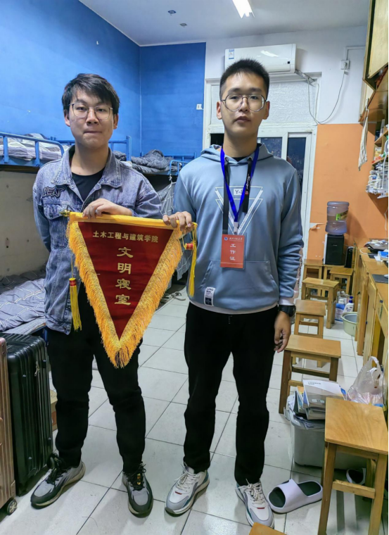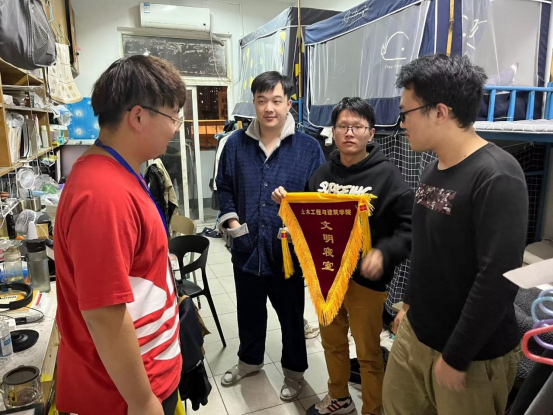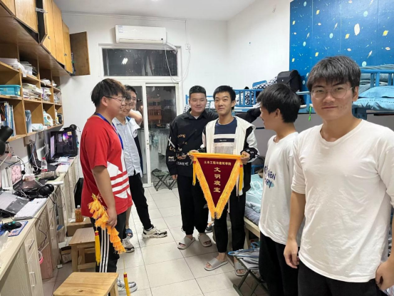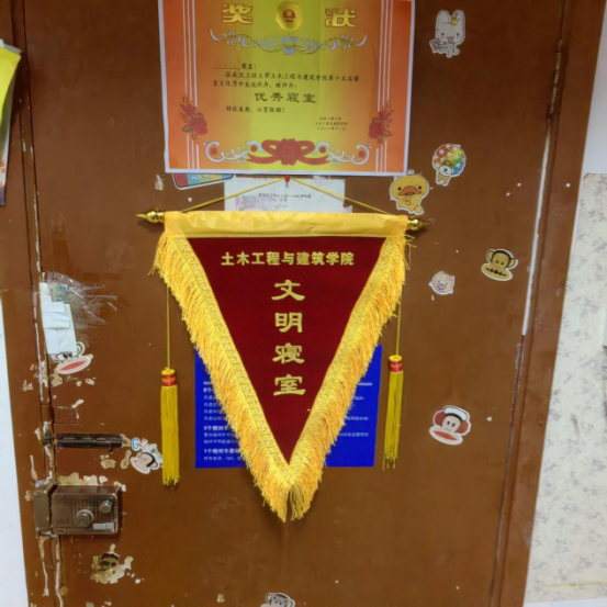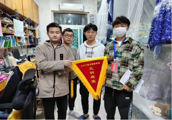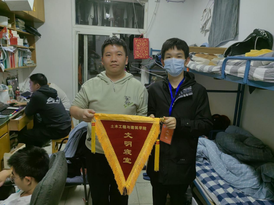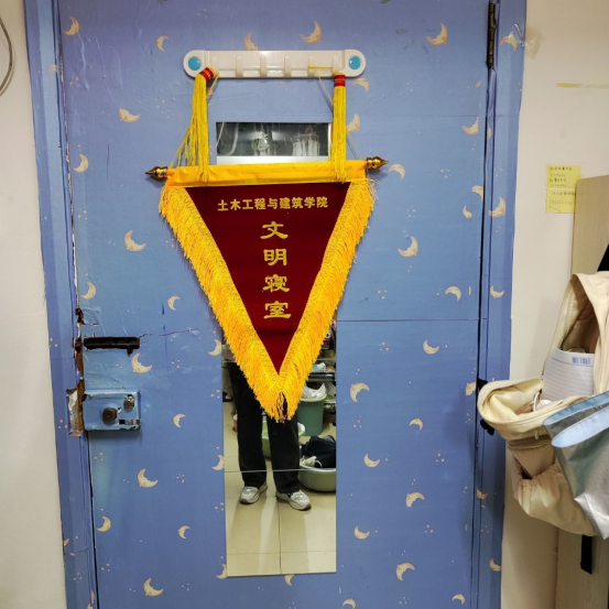 在寝室检查结束后,结合本月各寝室自评与互评情况,对评分最高的寝室颁发文明寝室流动红旗,希望通过这面小小的旗帜能够进一步强化员工劳动意识,养成良好的卫生习惯。