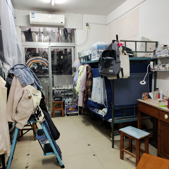 男生寝室收纳整齐,地面干净。
