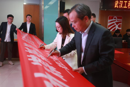 一节团课、一次宣誓建立起bv伟德国际1946与中铁七局武汉工程有限公司良好的团建共建合作基础,双方在“校企联动谋新篇,党建共建育新人”的横幅上签字承诺,并表示后续将继续深化校企共青团组织共建,共同服务青年成长成才。