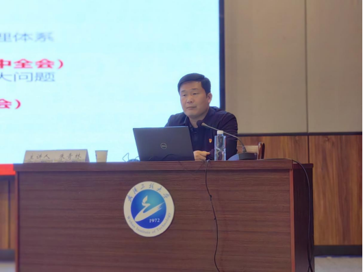 朱青林以《学思践悟二十大 筑梦奋进新征程》为题,从党的二十大概况及重要成果、党的二十大报告的主要内容以及学思践悟、知行合一三个方面依次展开,重点以牢牢把握大会主题和总要求、牢牢把握过去五年的工作和新时代十年的伟大变革、牢牢把握开辟马克思主义中国化时代化新境界、牢牢把握新时代新征程中国共产党的历史使命、牢牢把握对未来五年党和国家各项事业发展的战略部署、牢牢把握以伟大自我革命引领伟大社会革命的重要要求、牢牢把握以团结奋斗、顽强斗争应对风险挑战的重要要求等七个方面,对党的二十大精神进行了深入、系统的阐述解读。