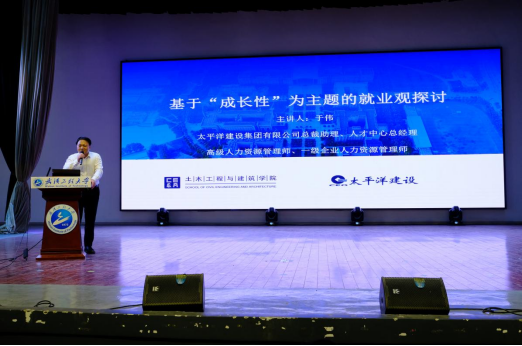 在“职业经理人”讲座环节,太平洋建设集团总裁助理、人才中心总经理于伟从就业背景、就业视角以及用人单位视角切入,深度剖析了当前毕业生就业面临的困境和难点,积极回应员工关切的面试技巧、薪资福利待遇、未来发展机遇等问题,整个报告立意深远,主题突出。