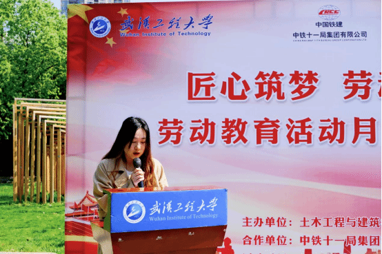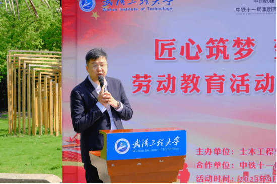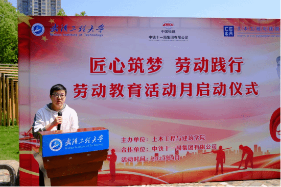 中铁十一局六公司人事专员刘继琮在仪式上分享了“杨连弟登高”故事,介绍了中铁十一局作为世界五百强中国铁建的骨干企业,自创立以来一直发扬“逢山开路、遇水架桥”的铁道兵精神,勉励土建学子都能认真感悟、大力弘扬和赓续“登高”精神。
