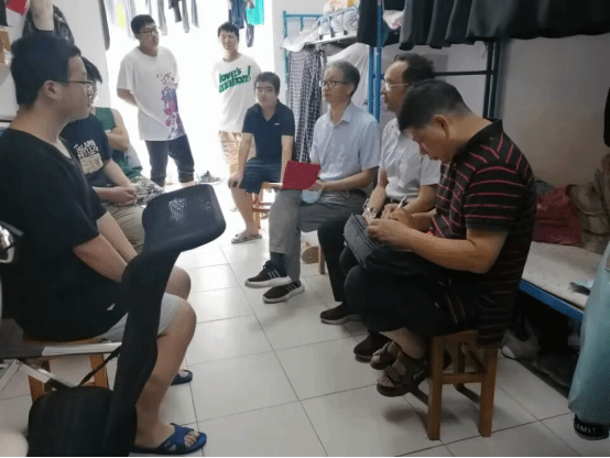 陆新书记带队走访了武昌校区5栋男生宿舍,在宿舍与员工面对面沟通,详细询问无课员工的日常学习和生活情况,了解他们对未来的职业目标定位,勉励他们要确定发展方向,夯实专业基础,提升综合素质。同时,叮嘱同学们要提高自我防范意识,全体成员齐心协力,共同营造一个安全、健康、舒适、和谐的学习和生活环境。