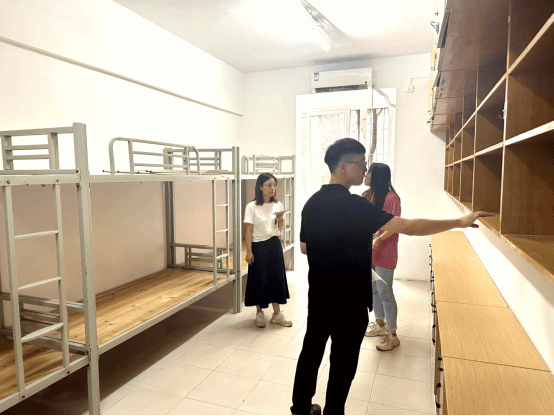 用心摸实情,用爱筑防线。此次排查重点检查了寝室床铺和内部设施情况,成书记和辅导员们检查每一间宿舍的水电、桌椅、消防设备、宿舍床位栏杆等部分是否存在安全隐患,筑牢宿舍安全防线。辅导员们对发现的问题进行了详细的记录、整理汇总,进一步落实了宿舍安全的专项工作。同时成书记叮嘱宿舍管理人员仔细排查消除各类风险隐患,对于已经发现的问题要及时补缺、做实做细,力争在新生正式入住前尽可能地完善宿舍各项设备,为新生营造一个安全舒适的居住环境。