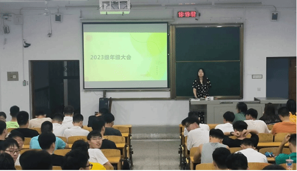 9月10日晚,2023级新生年级大会在学院2教2301和2302举行,辅导员夏添以时间轴为序,系统阐述本科生培养及学位管理,包括教学安排、毕业论文相关工作、社会实践和专业实践的有关要求,为大家老员工生涯的合理规划提供参考建议。辅导员曾学菲对同学们进行了安全教育、防诈骗宣讲,提醒各位同学时刻注意人身安全,树立安全意识,始终将安全放在首位,严防电信诈骗;同时介绍了近年来学院员工就业基本情况,多渠道了解就业现状,建议提前规划尽早为就业做准备。