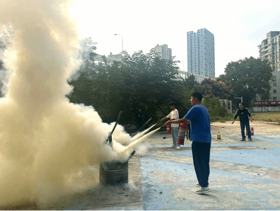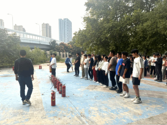 在了解各种消防设备的基本知识和使用方法后,学校保卫处设置了火源点,模拟真实的火灾情况。同学们积极踊跃、兴致高昂,按照示范动作认真使用灭火器材对现场设置的小型模拟火堆进行灭火实操演练。演练过程中,学校保卫处时刻关注同学们的操作技巧和反应速度,及时给予指导和纠正。通过多次的实操演练,同学们逐渐熟悉了灭火器的操作,增强了应对火灾紧急情况的能力。