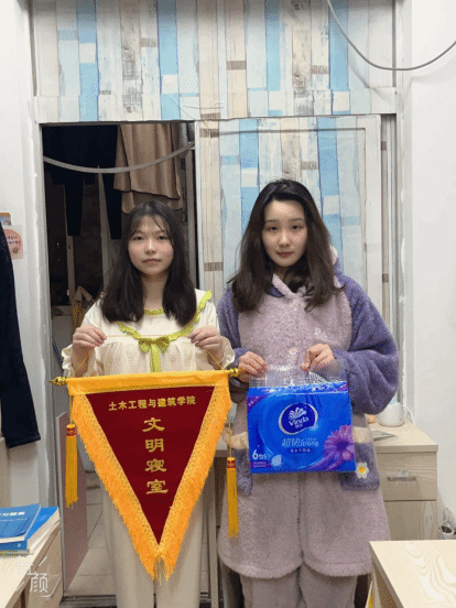 本次检查的内容主要包括卫生是否认真打扫,是否使用违规电器,是否饲养宠物,物品摆放是否整齐,宿舍内是否有异味等等。同时根据上学期文明寝室总的评选情况,学院最终评选男女生各四个文明寝室: