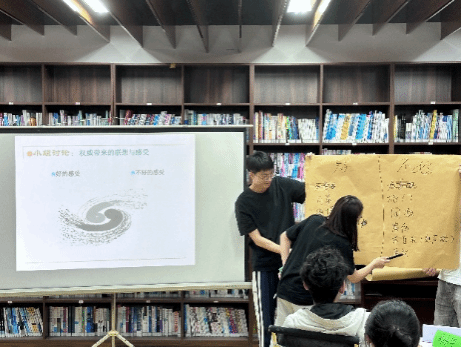 最后,孙老师通过集体赋能环节让同学们感受团体的支持和鼓励,帮助同学们消化理想和现实冲突带来的压力,借助人际关系中的“多棱镜”,丰富理解导学沟通中的多维视角,引导同学们主动沟通解决导学关系中的困难。