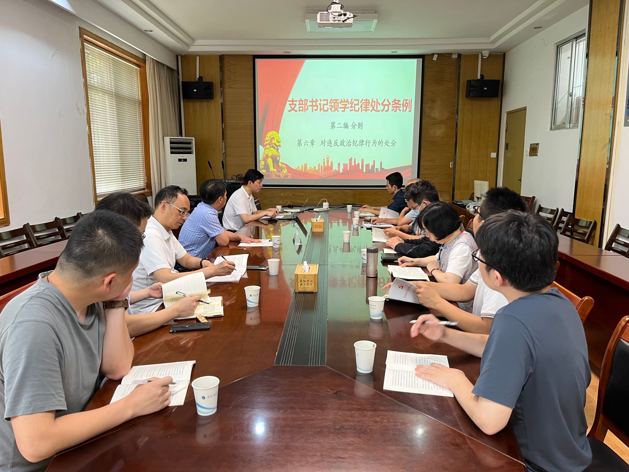 随后,支部书记徐丰以讲授党课形式领学了新修订的《中国共产党纪律处分条例》第六章“对违反政治纪律行为的处分”。徐丰带领大家逐一学习了第四十九条至七十六条内容,对比分析了新旧条例修改部分内容。同时将“守住底线,不越红线”的最低标准和“当人师,做经师”的最高标准结合起来,引导党员教师深刻地认识到党内法律和师德准则的有机统一性。