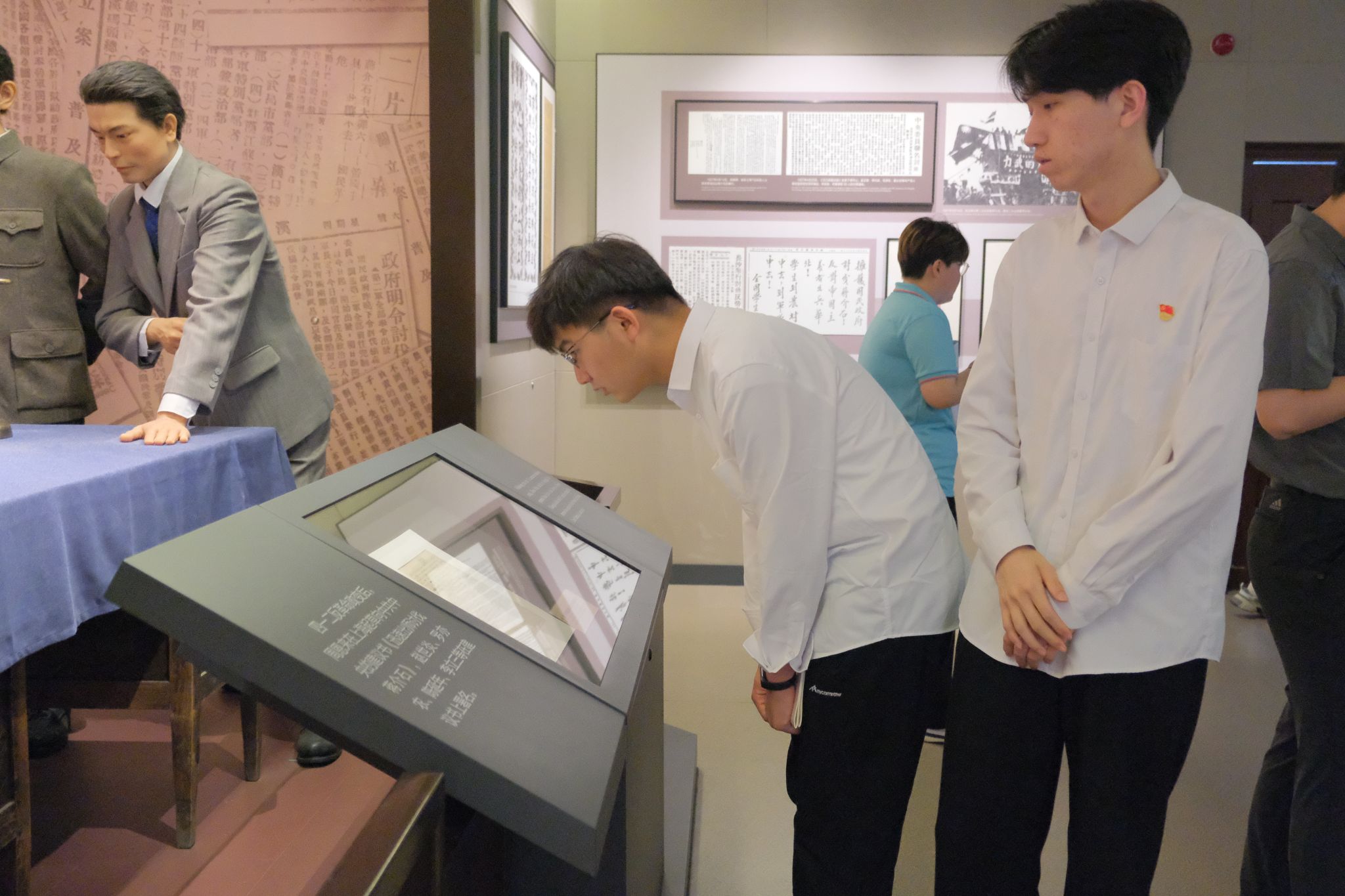 实践团成员们先后参观了中国共产党五大会议历史陈列展和中国共产党反腐倡廉历程展,“高潮与危机”、“贡献与局限”、“应变与转折”三大展区充分展示了中共五大的历史背景和大革命时期腥风血雨的年代,实践团成员们不时驻足观看、认真思索,对革命先辈为共产主义事业奉献终身的崇敬之情油然而生。