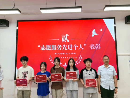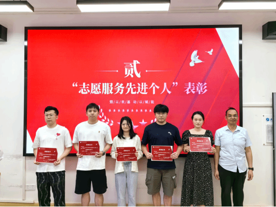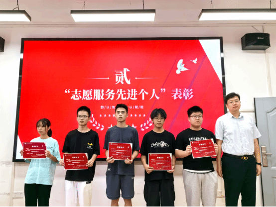 陆新与刘继琮分别为学院员工志愿者颁发“志愿服务先进个人”荣誉证书。